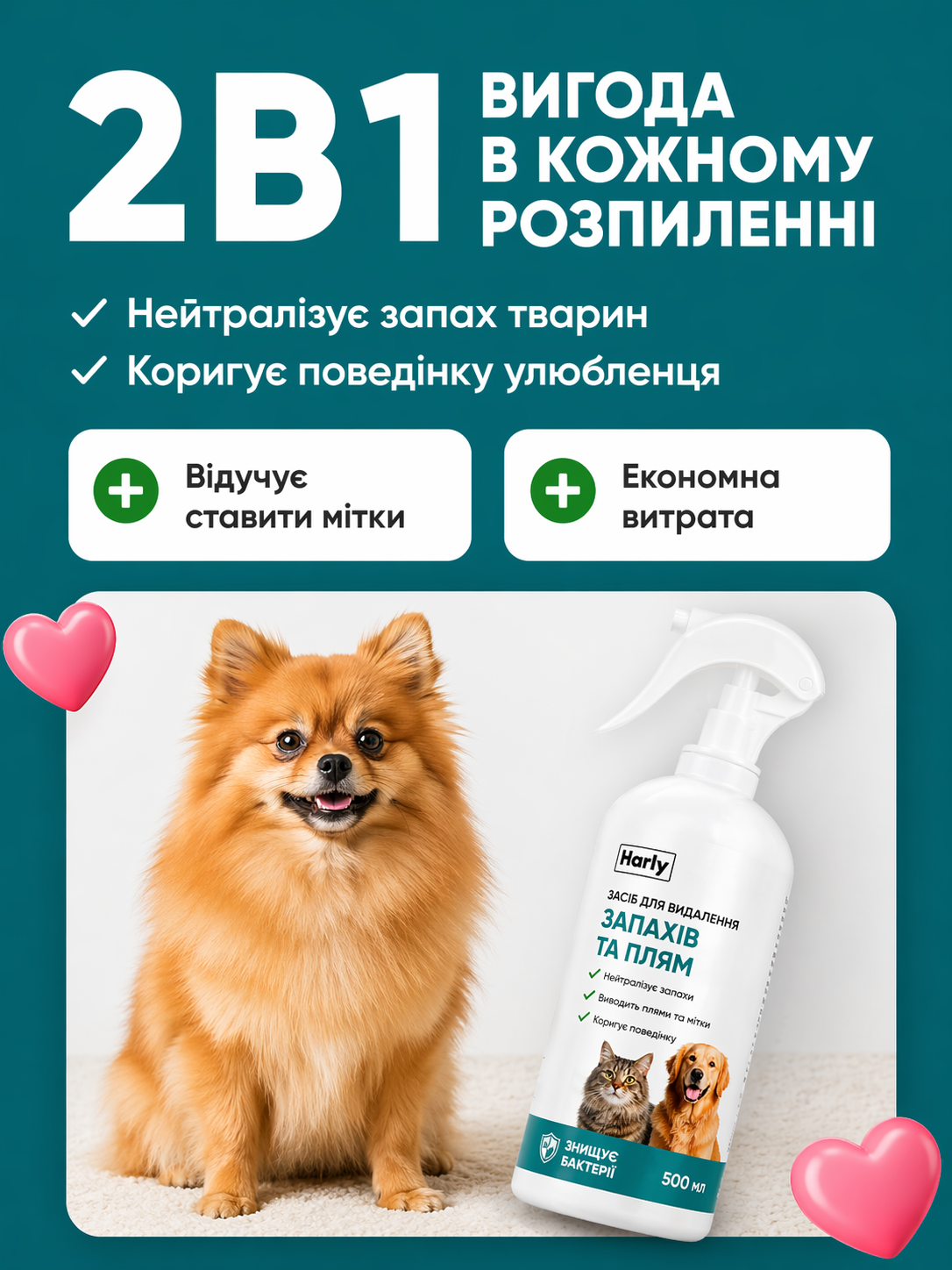 Ефективно усуває неприємні запахи та сліди від тварин 🐾