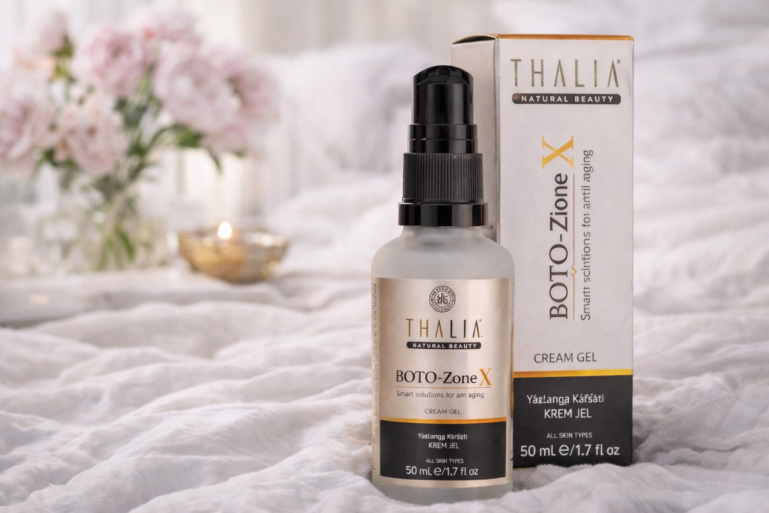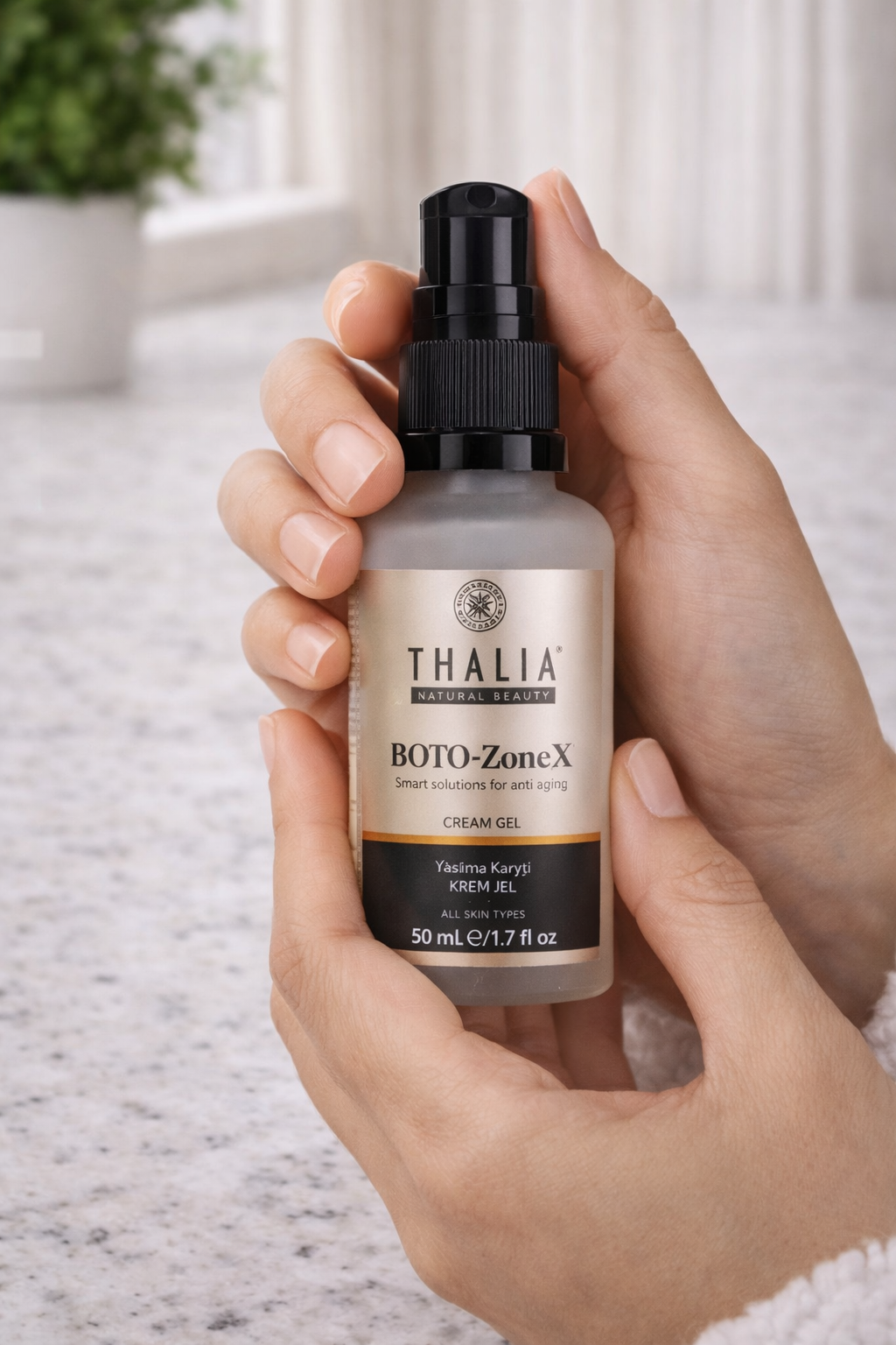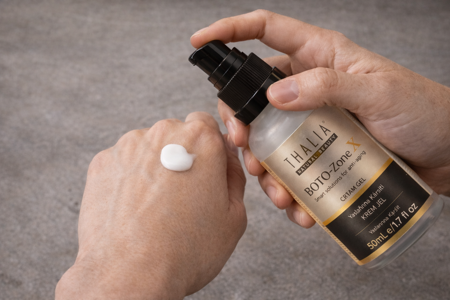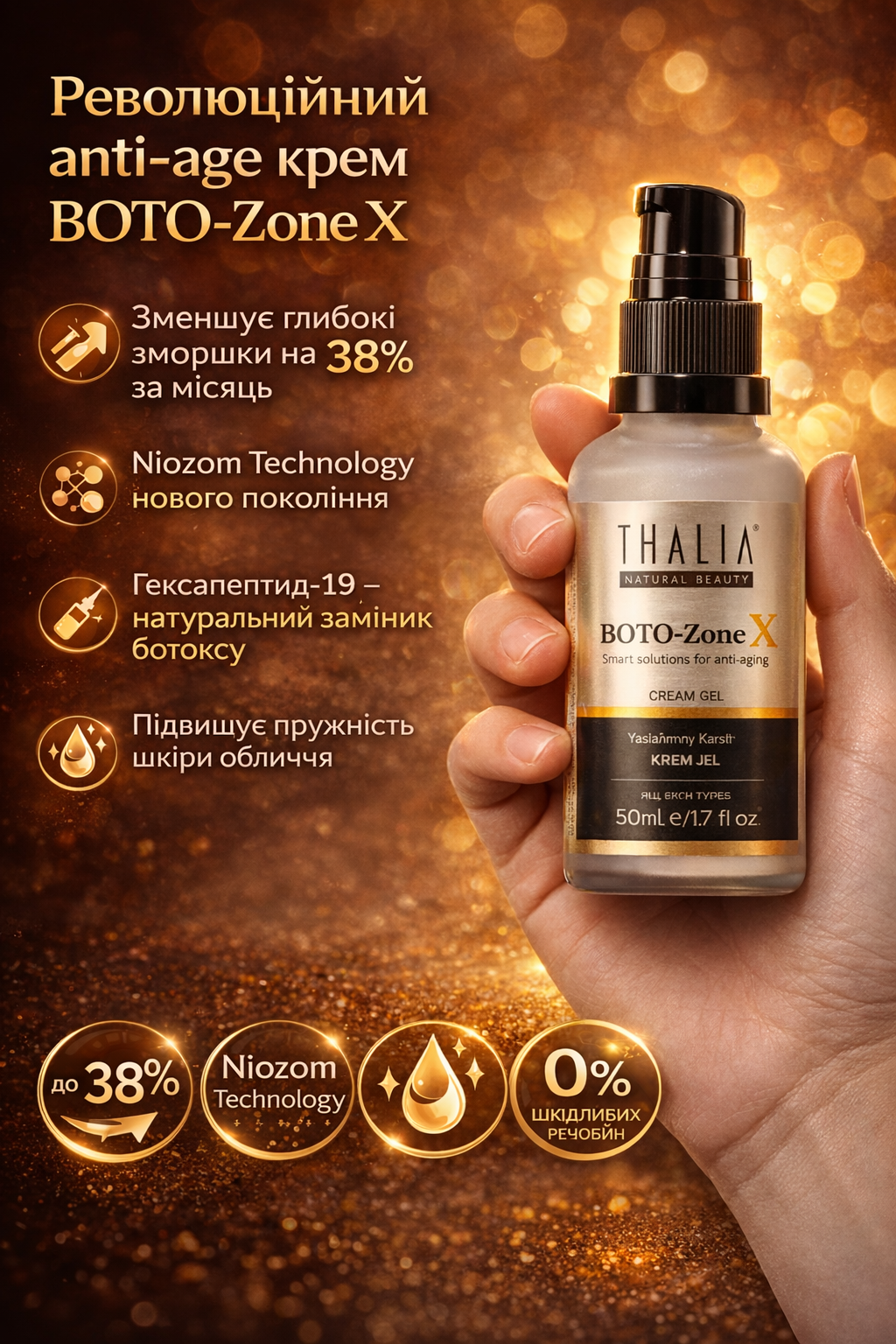 Гель-крем BOTO-ZoneX м’яко впливає на шкіру, допомагає зменшити прояви зморшок, відновити пружність і повернути відчуття гладкості без різкості чи дискомфорту.