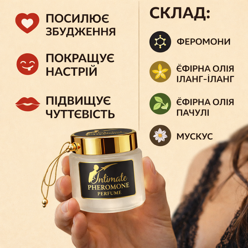 Це тонкий імпульс, що зближує, розслабляє та створює особливу інтимну атмосферу. Парфум м’яко пробуджує бажання, підсилює природну енергію та чуттєвість, налаштовуючи на близькість без різкості чи дискомфорту. Він діє на підсвідомість, посилює відчуття й залишає спокусливий шлейф, який важко забути.