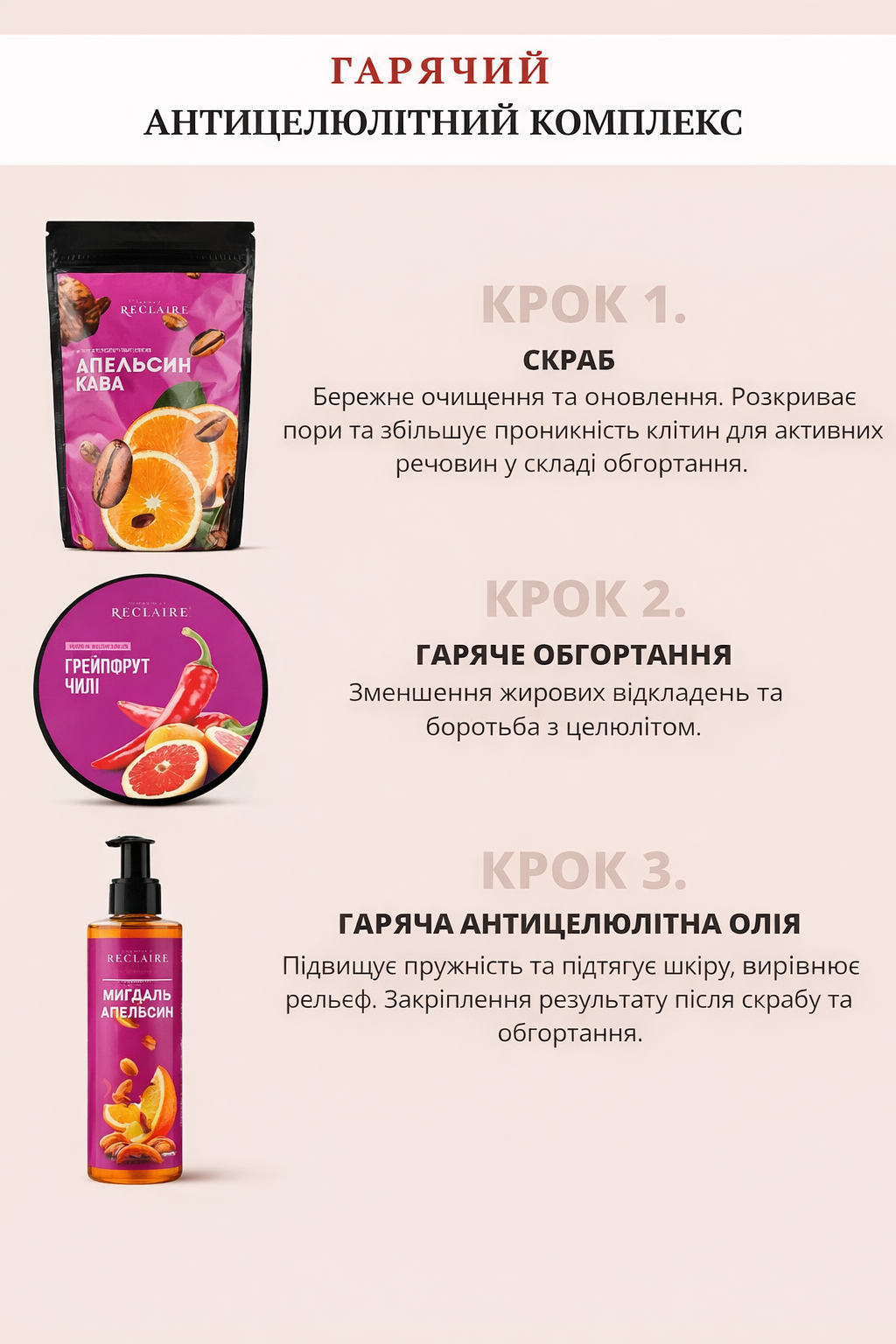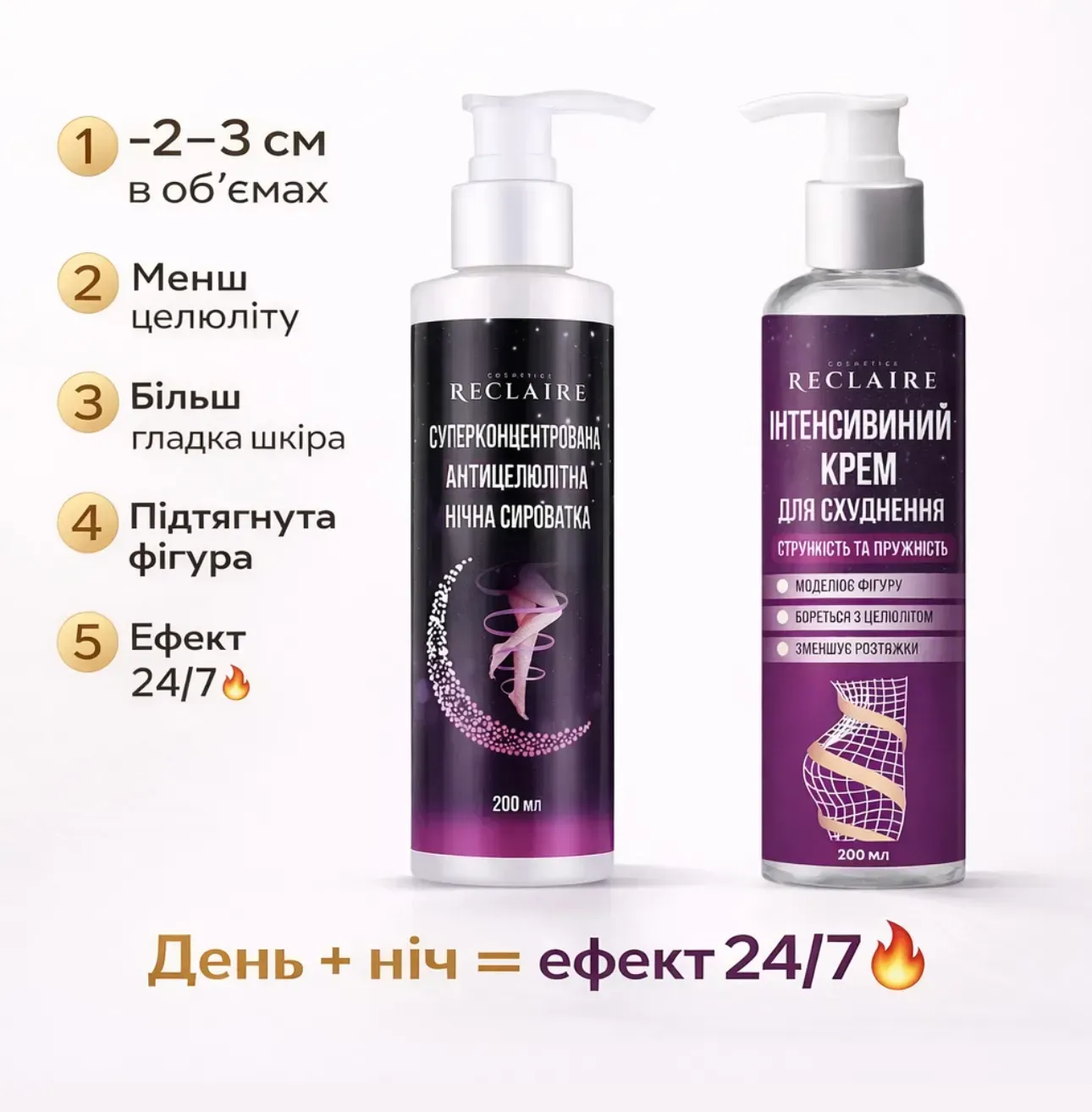 Антицелюлітні комплекси Reclaire для схуднення та моделювання тіла