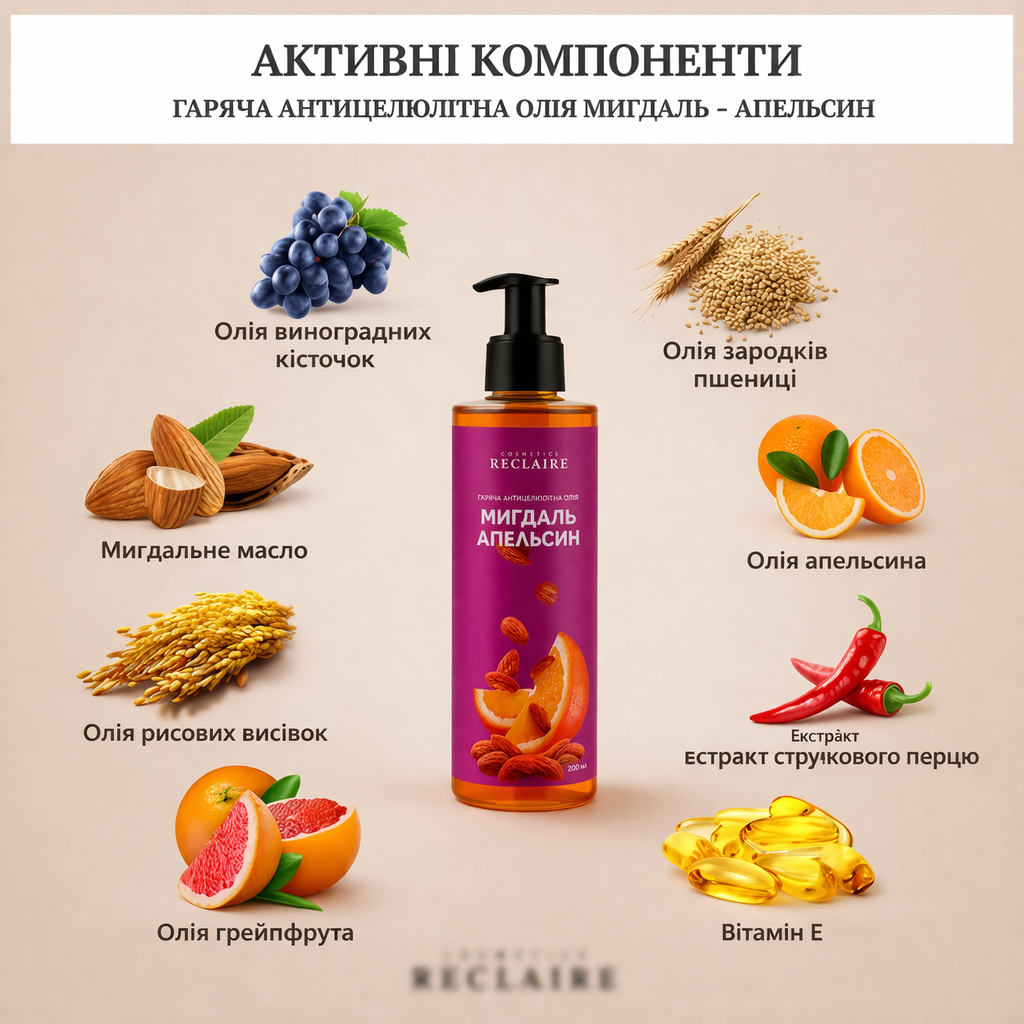 3️⃣ Антицелюлітна олія — підтягує, вирівнює та закріплює результат